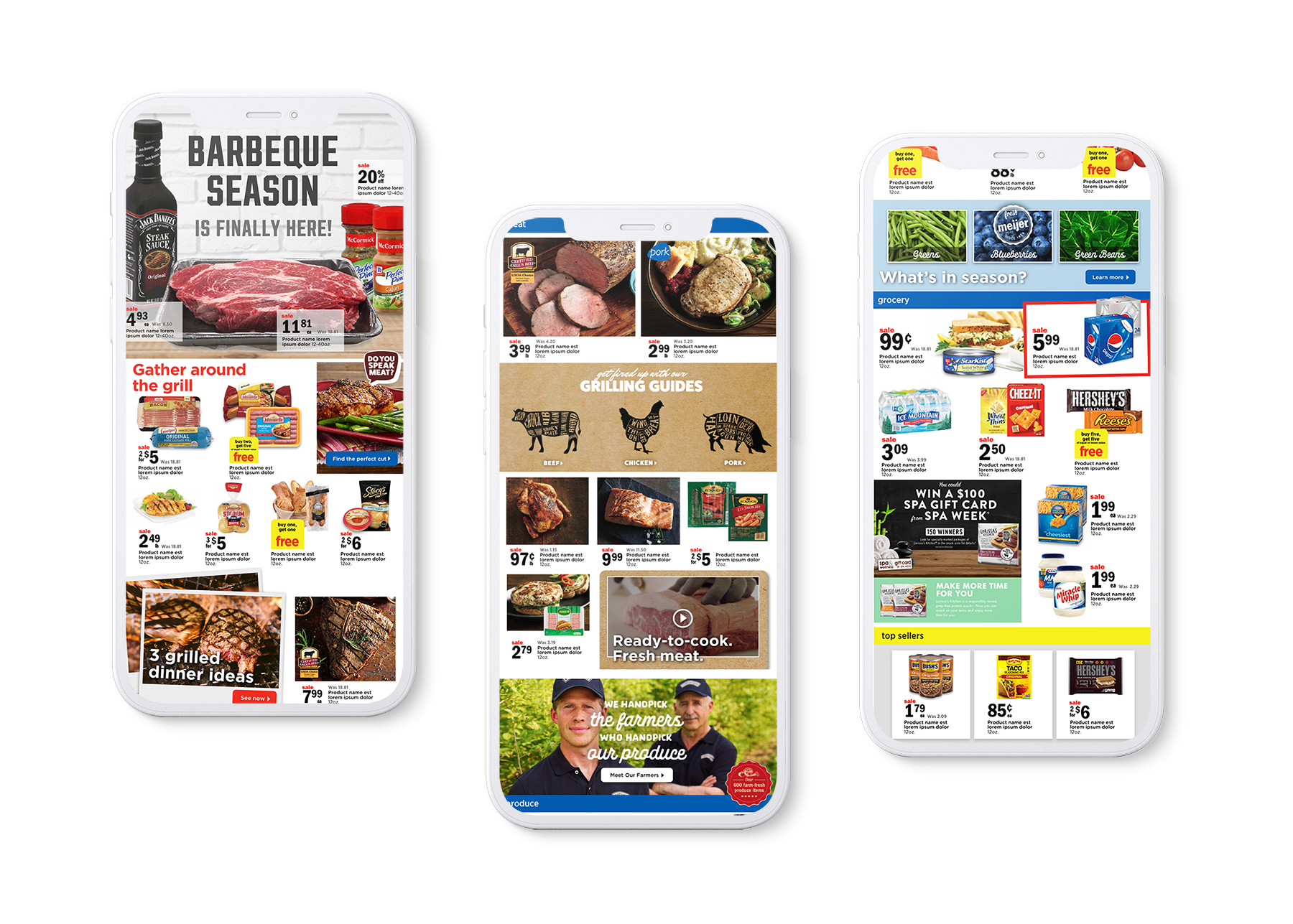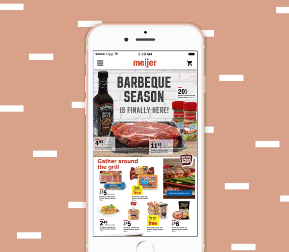 Designed a mockup of horizontal and vertical digital publication for Meijer. Main objective of the project was to come up with a user-interactive digital publication with an ability to automate the content for the future publications. Used coloured banners to visually separate each category. Interactive features such as link out to recipes and videos were included.